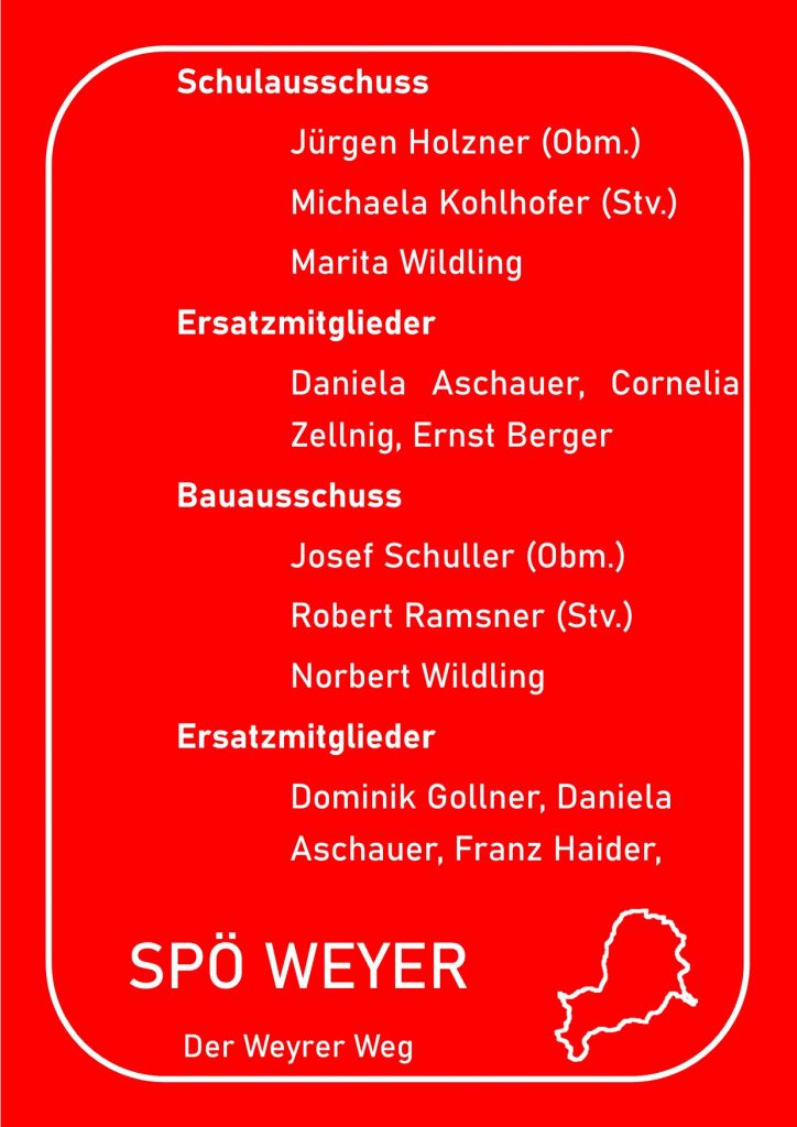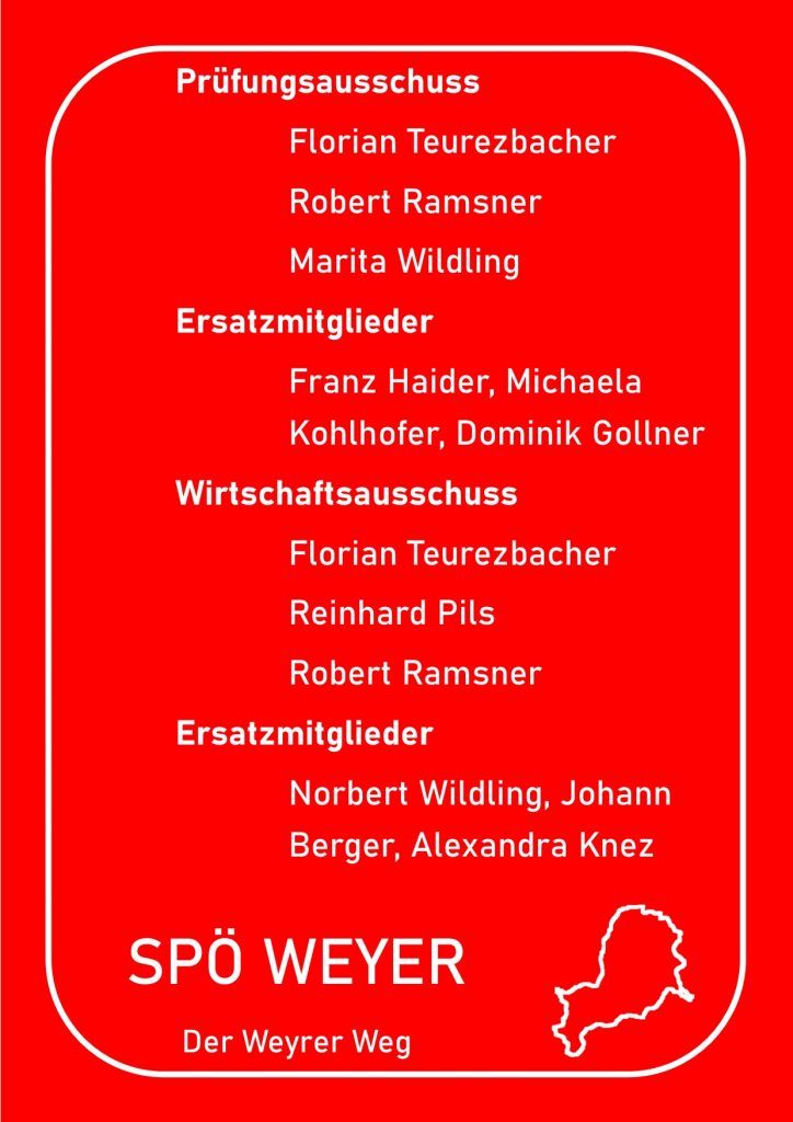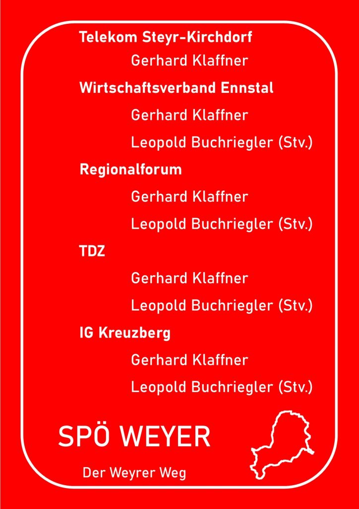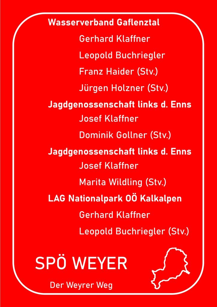 Anbei eine Auflistung wer für die SPÖ Weyer in welchen Gremien vertreten sein wird.