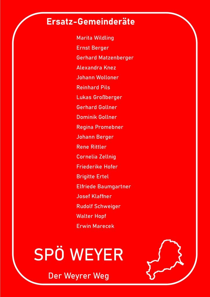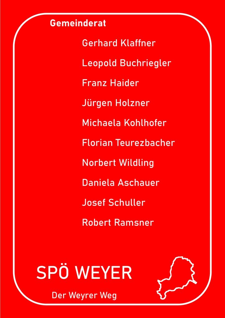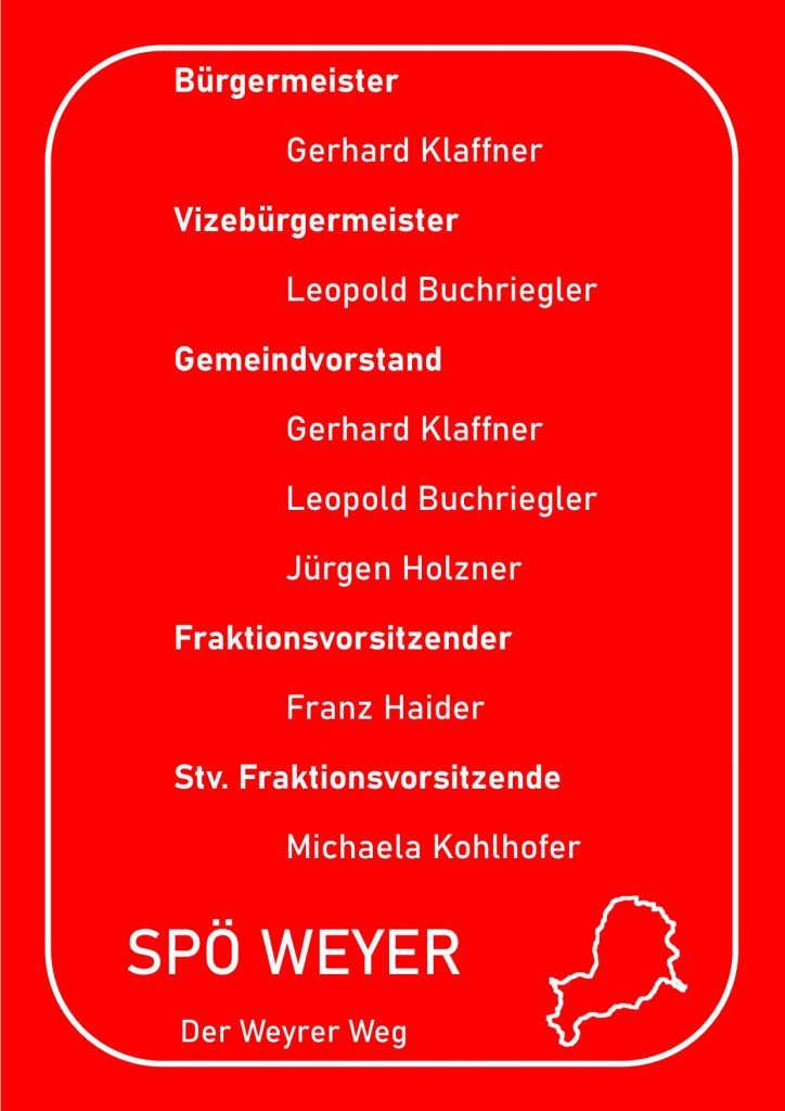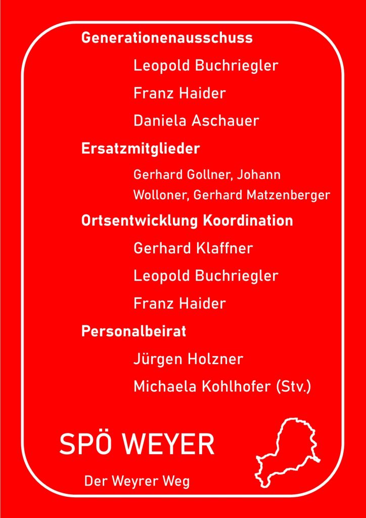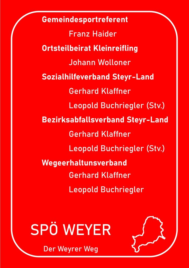 Anbei eine Auflistung wer für die SPÖ Weyer in welchen Gremien vertreten sein wird.