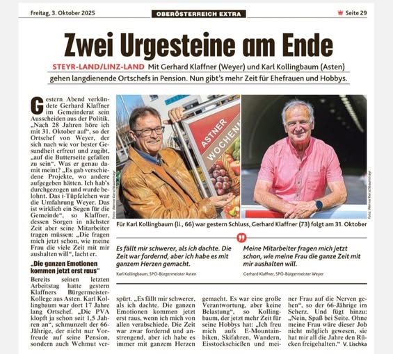 Nach der gestrigen Gemeinderatssitzung kann es nun offiziell vermeldet werden: Mit 31.Oktober endet eine Epoche In der Weyrer Geschichte.